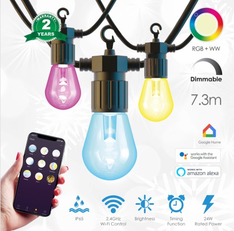 24W Smart WIFI LED Festoon Light | 7.3M | Compatible with Amazon Alexa, Google Home and Google Assistant