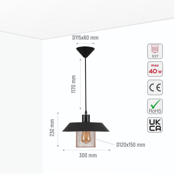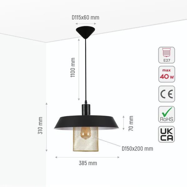 The Black Flat Top Mesh LED Pendant Light is a stylish and atmospheric lighting solution designed for pubs, bars, restaurants, cafés, and hospitality venues looking to introduce industrial character with a modern edge. Featuring a distinctive mesh cage in a bold black finish, this dome-shaped pendant creates depth, texture, and visual interest while delivering practical illumination for social and dining spaces.