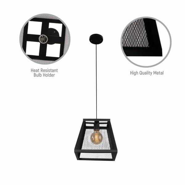 Black Metal Cuboid Caged LED Pendant Light