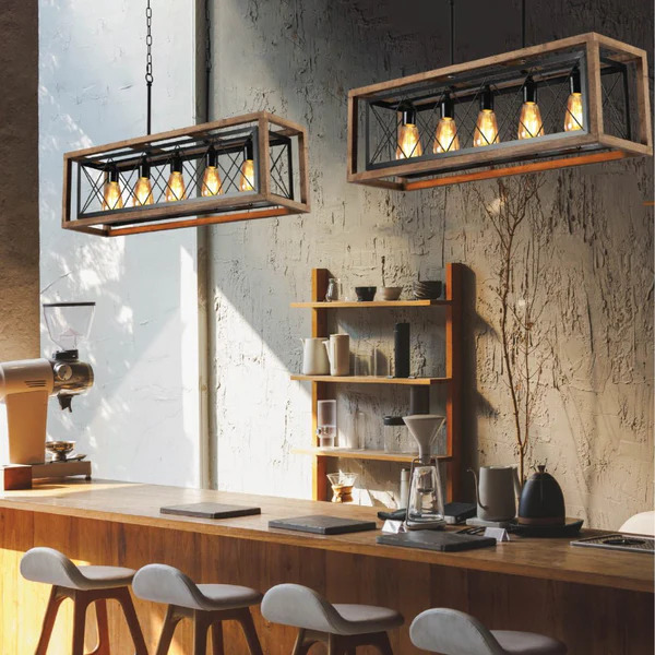 With five E27 Edison Screw lamp holders, the chandelier delivers strong, evenly distributed illumination, making it ideal for installation above bar counters, long dining tables, kitchen islands, and communal seating areas. Compatible with GLS and ST64 bulbs, which are included as standard (ST64 Included), the open cage design allows light to spread freely while highlighting the bulbs for added visual appeal. When used with dimmable bulbs, lighting levels can be easily adjusted to create the right atmosphere throughout the day—from bright service lighting to warm evening ambience.