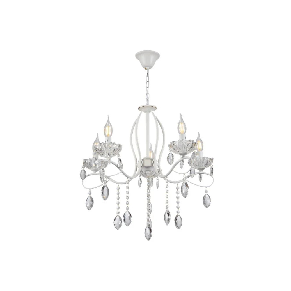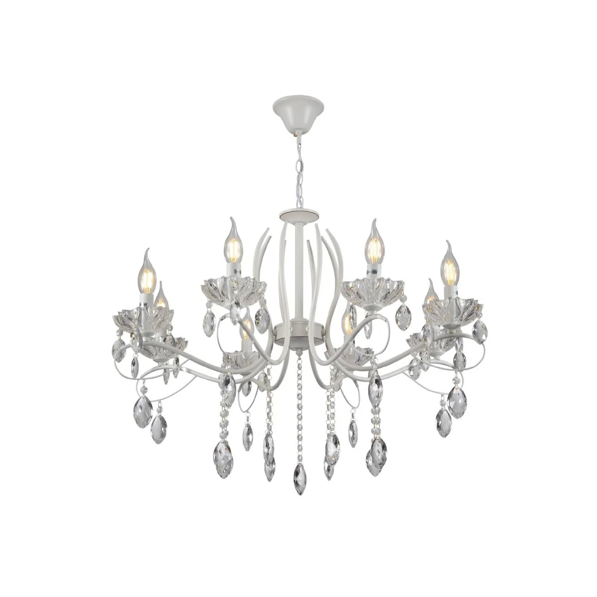 Crafted from high-quality steel, crystal, and glass, the Château combines durability with decorative sophistication. The white frame is beautifully complemented by clear crystal elements, creating a balanced aesthetic that enhances light reflection without overpowering the space. Its suspended design and adjustable drop length allow for flexible installation, making it suitable for a variety of ceiling heights and room layouts.