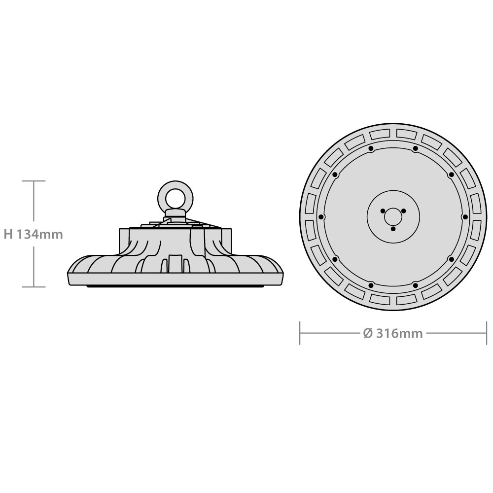 Introducing the powerful Dimmable LED High Bay, an energy-efficient lighting solution designed for a variety of demanding applications. Equipped with a high-quality Philips driver, this High bay light delivers 140 lumens per watt, providing bright illumination with colour temperature adjustable options of 4000k, 5200k and 6500k.