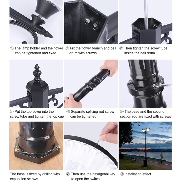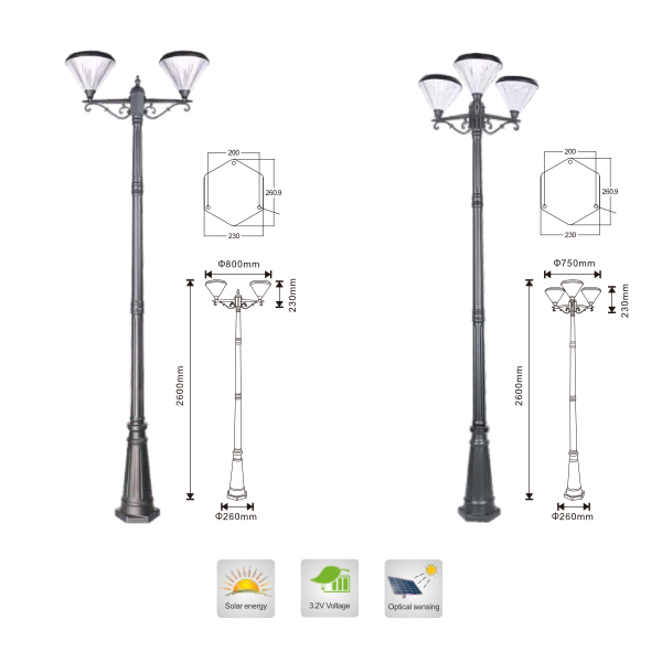 | Dimensions: | L: 2600mm W: ⌀750mm Base: ⌀260mm Lamp height:230mm |