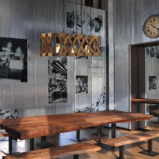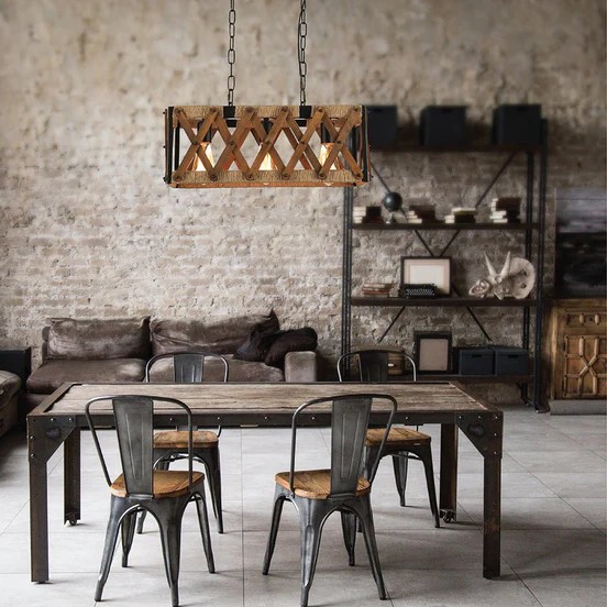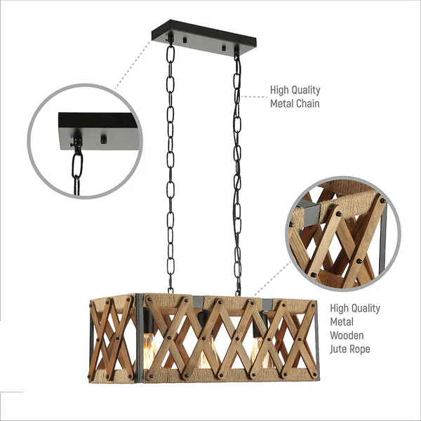 The Oak Wood X-Frame Island LED Chandelier is a bold suspended lighting feature designed specifically for pubs, bars, restaurants, cafés, and hospitality venues that want to combine industrial character with warm, inviting ambience. Featuring a striking X-frame cage design in a matte black finish, complemented by natural hemp rope detailing, this chandelier delivers a distinctive rustic-industrial look that works equally well in traditional pubs, modern bars, and contemporary restaurant interiors.