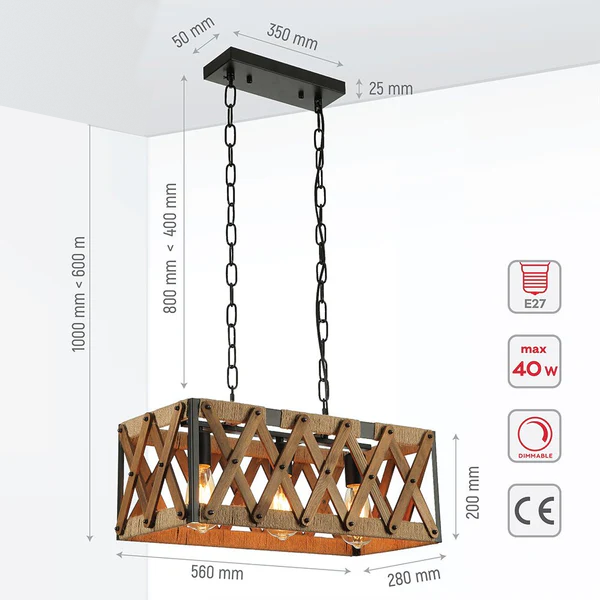 Hardwired and suspended for a clean, professional installation, the Oak Wood X-Frame Island LED Chandelier is built for high-use commercial environments. Constructed from durable steel and rope materials, it is rated IP20 for indoor use and operates reliably between -20°C and +45°C, making it suitable for busy hospitality settings.